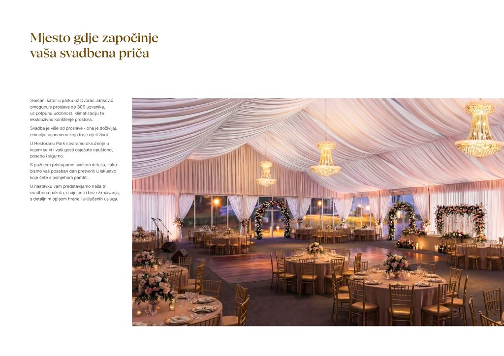 U srcu stoljetnog parka uz Dvorac Janković smjestio se elegantni svečani šator namijenjen vjenčanjima i posebnim proslavama. Prostor je osmišljen kako bi spojio prirodnu ljepotu parka s udobnošću i profinjenom atmosferom modernog event prostora.