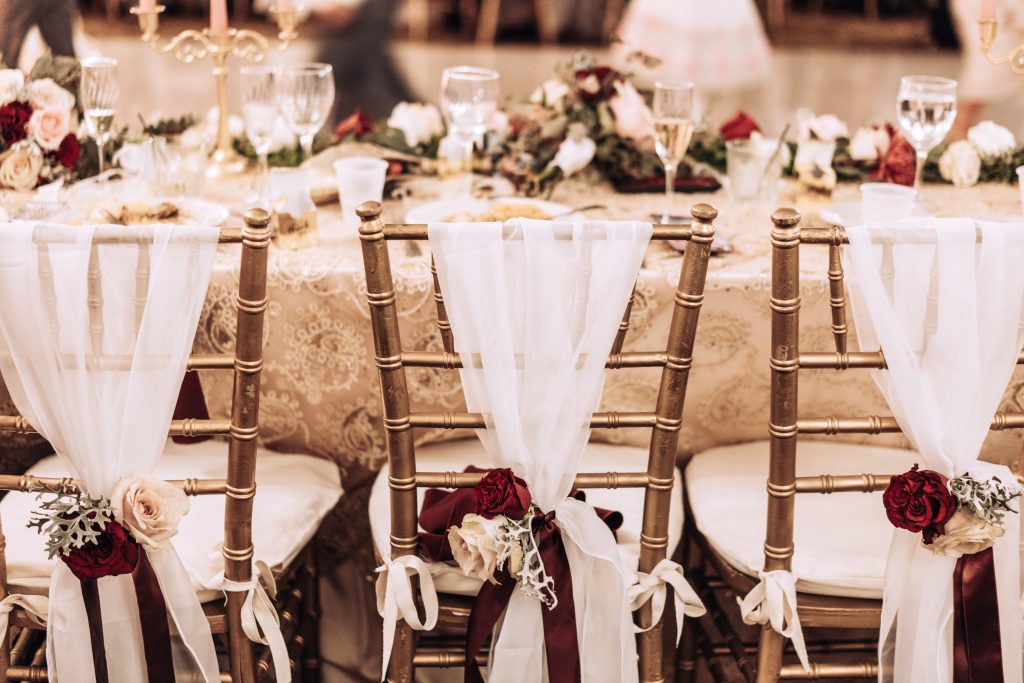 Svečani okrugli stolovi s Tiffany stolicama osiguravaju elegantan izgled i udobnost za sve uzvanike.